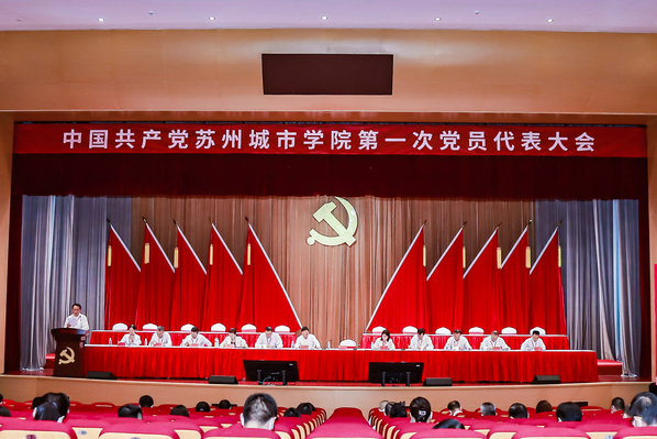 2022年9月27日,综合楼多功能厅,中国共产党苏州城市学院第一次党员代表大会隆重开幕。芮国强同志代表中共苏州城市学院委员会作了题为《赓续前行,踔厉奋发,全面开启国内一流高水平应用型大学建设新征程》的报告。话语铿锵,掷地有声。聆听报告,现场党代表掌声如潮,自豪感与自信心激荡满怀。