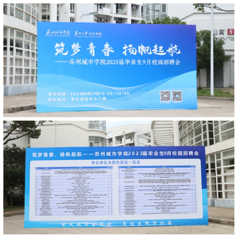 为认真贯彻落实党中央、国务院“稳就业”“保就业”决策部署,积极开展“两在两同”建新功行动,扎实推进“我为群众办实事”实践活动成效,准确识别、主动求变、科学应变,努力降低疫情对毕业生就业求职的影响,促进毕业生顺利毕业、尽早就业,我校于9月29日下午在学生活动中心二楼举办“筑梦青春,扬帆起航”苏州城市学院2023届毕业生9月校园招聘会。