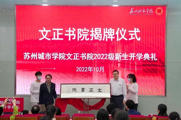 吴昌政宣读学校聘任文件,决定陈国安同志兼任文正书院院长,高雷为陈国安颁发聘书。赵志宏与陈国安一起为文正书院揭牌。教务处负责人施盛威和陈国安为文正书院导师颁发聘书,陈蕾、周鸣籁、龚红梅任工科基地班导师,王静、茆萌任文科基地班导师。