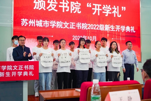 典礼上,党委学生工作部(处)负责人卞海勇、教务处张毅驰为学生代表颁发“开学礼”,文化衫和开学文具礼盒承载着学校对书院新生的关怀与期许。文正书院学生梅晶晶表示,书院的开学典礼振奋人心,感到很荣幸能够成为书院首届学生,希望自己能够在文正书院提升能力、丰富经历,与书院共同成长,努力成为优秀人才,向学校交出一份满意的答卷。