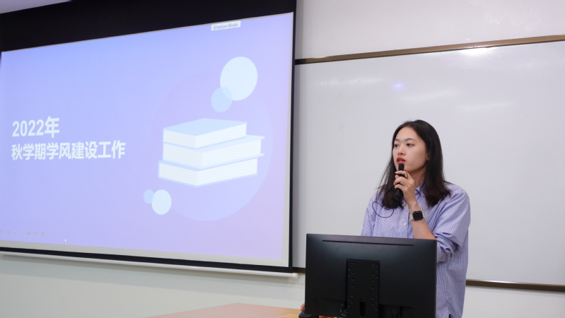 陈芳针对近期学风建设多项工作进行了梳理解读,并明确了具体工作内容和要求,她强调学风建设仍要从严从紧。同时,此次会议邀请校级“优良学风班”获得班级19英语班学习委员姚慕晴作了关于优良学风班创建经验的分享。