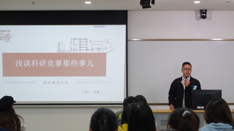 沈耀围绕科研竞赛的项目类别、课题方向、意义作用、系内成就等进行全面介绍。他鼓励同学们要勇于、乐于参加科研竞赛,在竞赛中不断提高自身综合素质和实践能力,努力成为创新型人才。