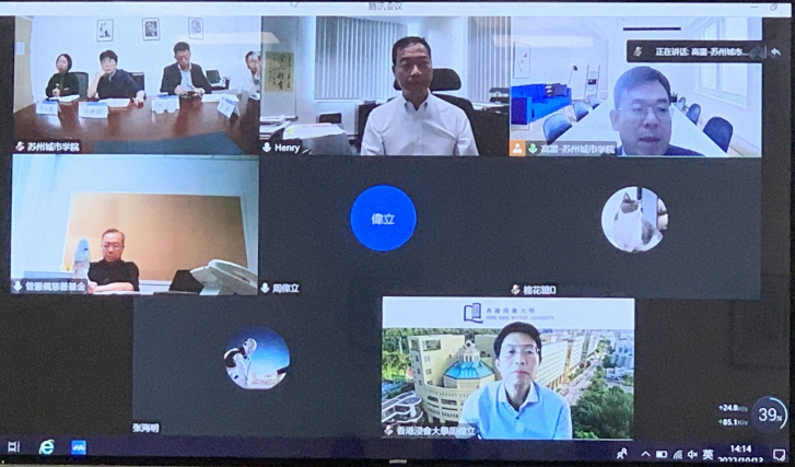 10月13日下午,我校与香港浸会大学在国际交流学院206会议室举行视频会议。香港浸会大学副校长周伟立、工商管理学院市场学系系主任霍广贤,曾宪备慈善基金董事曾庆辉、顾问方永康,苏州市委统战部港澳台处处长陈浩,我校党委常委、副校长高雷,国际合作交流处(港澳台办公室)负责人唐凤珍等出席会议。会议由高雷主持。