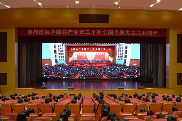 10月16日上午,中国共产党第二十次全国代表大会开幕会在北京人民大会堂隆重召开,中共中央总书记、国家主席、中央军委主席习近平代表十九届中央委员会向大会作报告。我校在综合楼三楼多功能厅组织集中收看报告直播。校领导,各职能部门负责人、群团组织负责人,思政课教师代表、辅导员代表、教职工党员代表,学生党员代表、发展对象代表、入党积极分子代表,民主党派代表参加活动。