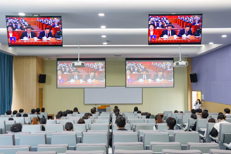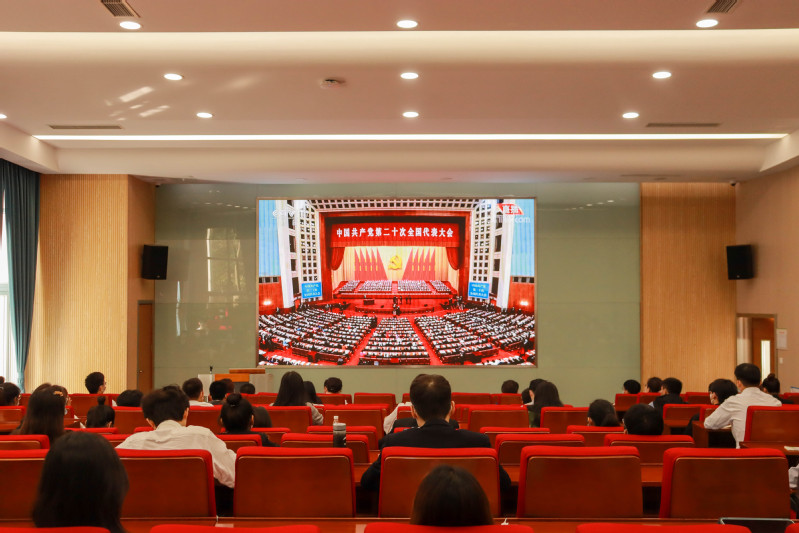 10月16日上午,中国共产党第二十次全国代表大会在北京人民大会堂开幕,习近平总书记代表党的十九届中央委员会向大会作报告。光学与电子信息学院组织学院教职工党员、学生党员、发展对象、入党积极分子以及团学组织学生骨干、团员青年代表在教学楼3-101和3-201集中收看开幕会直播。