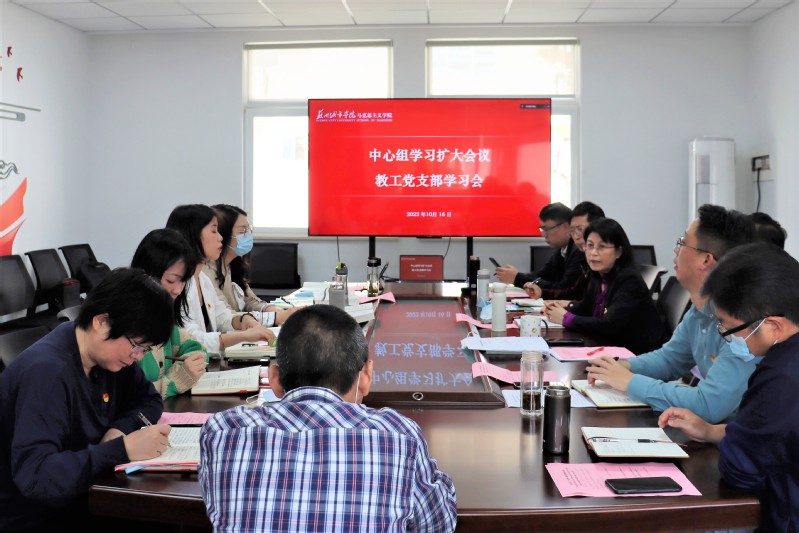 10月16日下午,为更好地学习宣传贯彻党的二十大精神,进一步推进学习型组织建设,我校马克思主义学院在尊师楼314会议室召开中心组学习扩大会议暨教工党支部专题学习会议。学校党委副书记、马克思主义学院党委书记周玉玲,马克思主义学院院长高士华及学院党委中心组成员,学院教工党支部党员出席会议,会议由高士华主持。
