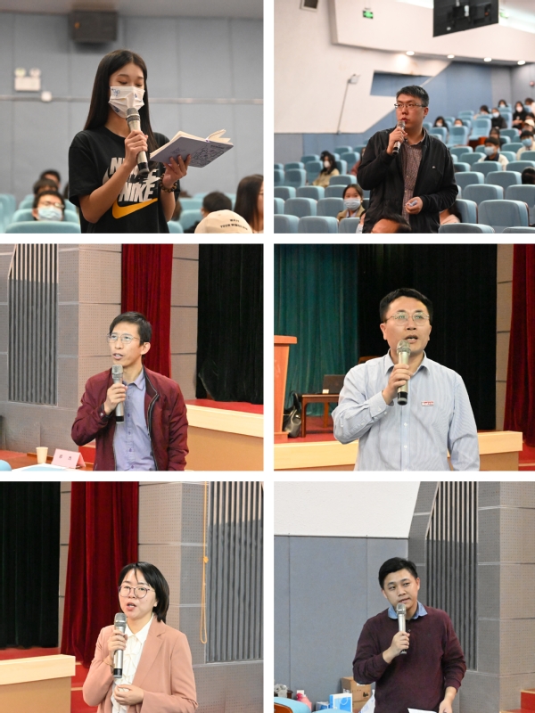 首先,在“喜迎二十大奋进新征程”融媒思政微视频评比中获奖的6组优秀作品进行了现场展播。这6组优秀作品是由各位思政课教师从2022年春季学期全校大一、大二学生制作的上百个思政实践教学微视频中优选33组进行参评而产生的。