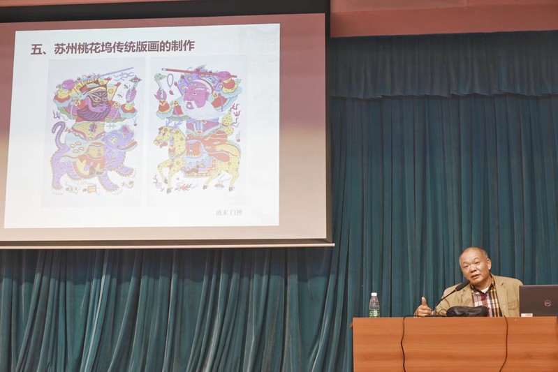 为弘扬中华优秀传统文化,传播中国精神,讲好中国故事,让青年大学生进一步触摸历史,传承文化,10月20日晚,由校团委主办,艺术系团总支承办的“信仰公开课”校级示范课“时代印痕——苏州桃花坞传统版画的‘前世今生’”在学术报告厅顺利举行。参加本次公开课的有校团委筹备组负责人崔苏妍,校团委、艺术系团学办老师,校“青马工程”青年先锋计划学员以及艺术系学生代表。国家一级美术师、桃花坞传统版画传承人顾志军主讲本次公开课。