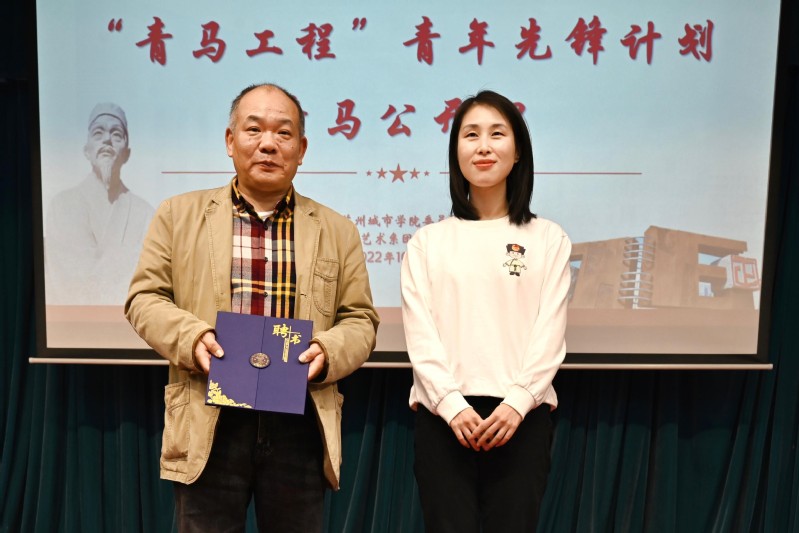 讲座开始前,崔苏妍为顾志军颁发苏州城市学院“信仰公开课”特聘导师聘书。