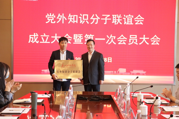 吴忠翔同志向季品锋会长授予了苏州城市学院党外知识分子联谊会标牌。