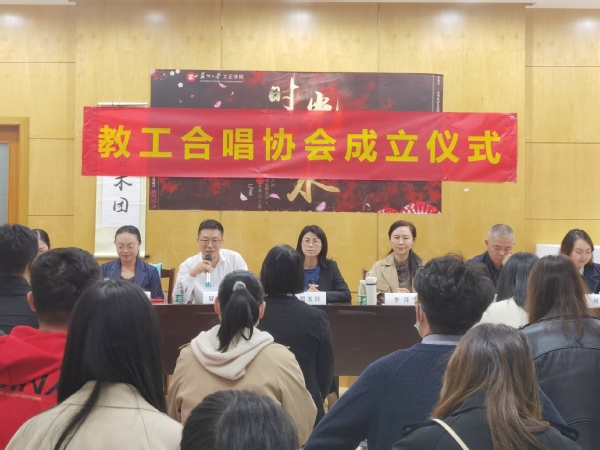 为进一步繁荣发展校园文化,丰富教职工业余文化生活,推动我校群众性合唱活动的开展,教工合唱协会于10月26日在活动中心104举行成立仪式暨第一次合唱排练。党委副书记周玉玲,党委常委、纪委书记李萍莅临致辞,仪式由工会负责人冒维东、设计与艺术学院何玉老师分段主持。
