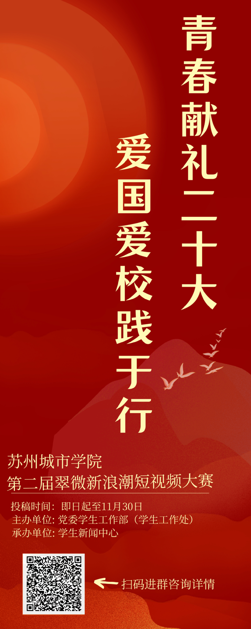 发布时间:2022-11-01浏览次数:5962文章来源:苏州城市学院