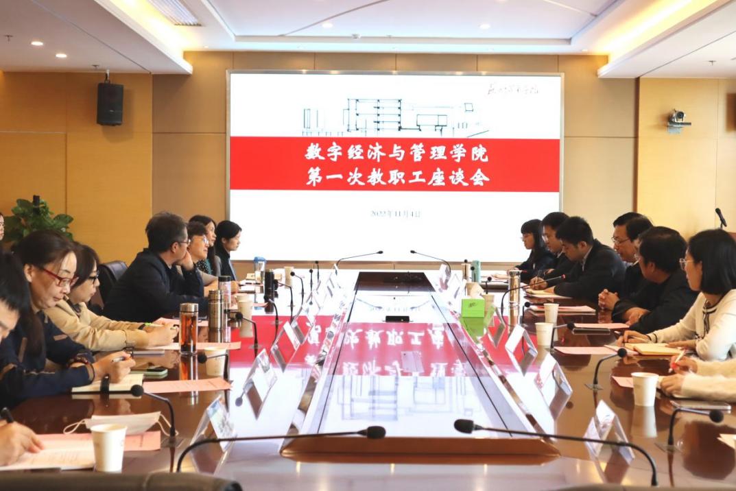 11月4日下午,为进一步落实学校决策部署,推动学院高质量发展和内涵式建设,数字经济与管理学院在综合楼三楼大会议室召开教职工座谈会,谋划学院发展思路。校党委常委、副校长兼院长周高及全院教职工参加会议。会议由周高主持。