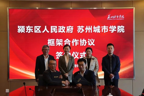 黄涧秋与史明康代表双方签署合作协议。根据协议,双方将共同推进在科技成果转化、人才交流共享、城市建设更新等方面的协同创新,助推我校国内一流高水平应用型大学建设,赋能颍东区经济社会高质量发展。