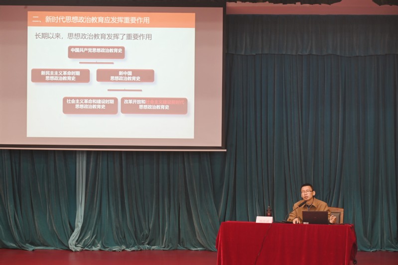 钱教授紧扣“全面领会党的二十大报告关于思想政治教育重要论述的深刻内涵——学习宣传贯彻党的二十大精神”主题,以“思想政治教育”为主线,结合学习党的二十大报告精神,从“思想政治教育”概览、新时代思想政治教育应发挥的重要作用、新时代思想政治教育须担负的中心工作三个部分展开,给同学们上了一堂既有思想深度,又有政治高度且生动详实的思政课。