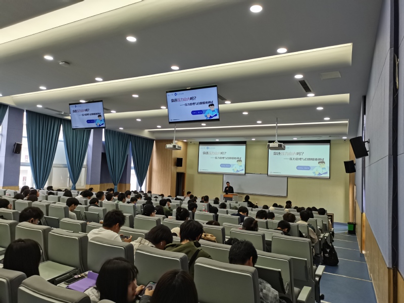 吴正言从“压力是什么”、“压力带来的影响”、“如何提高抗压能力”三方面出发,与同学开展深入交流,引导大家正确认识压力在不同时期的反应。他以生动有趣的案例与大家分享压力带来的不同维度的影响,并借助自身对压力情绪的亲身体验向大家展示了许多关于压力管理的方法。