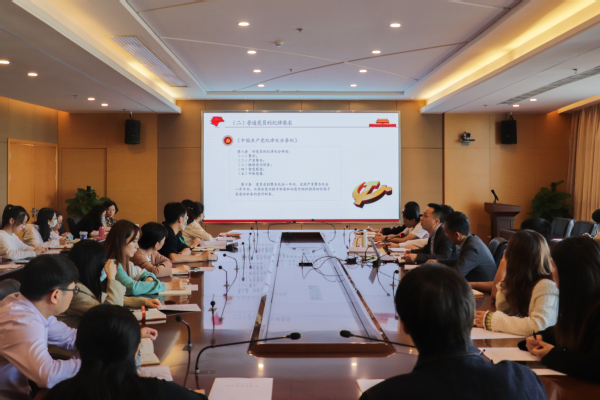 针对组织发展中存在的廉政风险点方面,他提出了三点措施:一是加强风险意识教育,以坚强的党性化“风险点”为“安全点”;二是提高制度执行力,把制度建设和执行贯穿于廉政风险防控工作的全过程;三是加强监督检查,增强抗腐蚀能力。最后他对修订版《中国共产党章程》进行了介绍。
