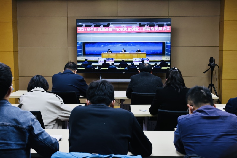 为学习贯彻党的二十大精神,落实党中央、国务院“稳就业”“保就业”决策部署,认真总结2022届高校毕业生就业工作,深入分析高校毕业生就业形势,安排部署2023届全国普通高校毕业生就业创业工作,11月15日,教育部、人力资源社会保障部召开2023届全国普通高校毕业生就业创业工作网络视频会议。我校在综合楼323会议室设立分会场,党委副书记、校长赵志宏,党委常委、副校长吴昌政,团委、党委学生工作部(学生工作处、人民武装部)、教务处(三创学院)负责人,各二级学院团学负责人、招生就业处全体人员参加会议。