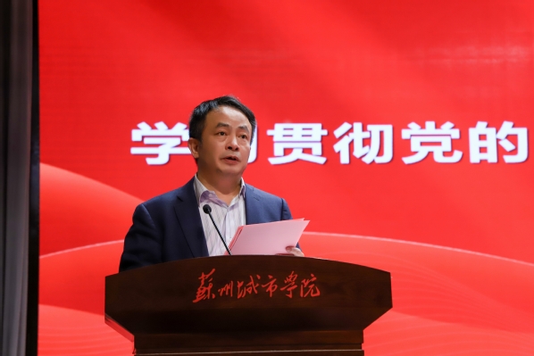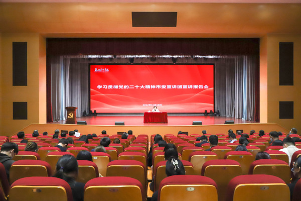 11月18日上午,根据市委统一部署,学习贯彻党的二十大精神市委宣讲团报告会在我校举行。苏州市委宣讲团成员、市委常委、宣传部部长金洁围绕学习贯彻党的二十大精神作宣讲报告。我校领导班子成员,校党委理论学习中心组成员,各部门、学院(部)负责人代表,专兼职思想政治理论课教师,全体辅导员和学生代表参加了报告会。报告会由校党委书记芮国强主持。