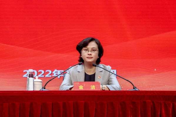 金洁在宣讲报告中指出,党的二十大是在全党全国各族人民迈上全面建设社会主义现代化国家新征程、向第二个百年奋斗目标进军的关键时刻召开的一次十分重要的大会,是一次高举旗帜、凝聚力量、团结奋进的大会。大会的主题是:高举中国特色社会主义伟大旗帜,全面贯彻习近平新时代中国特色社会主义思想,弘扬伟大建党精神,自信自强、守正创新,踔厉奋发、勇毅前行,为全面建设社会主义现代化国家、全面推进中华民族伟大复兴而团结奋斗。这一主题高度凝练,字字千钧,向党内外、国内外鲜明宣示中国共产党和中国人民在新征程上举什么旗、走什么路、以什么样的精神状态、朝什么样的目标继续前进。