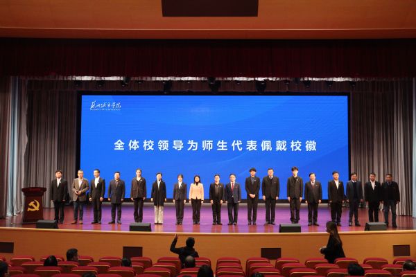 12月9日上午,我校校徽标志发布会在综合楼三楼多功能厅举行。我校党委书记芮国强,党委副书记、校长赵志宏,党委常委、副校长周高,党委常委、纪委书记李萍,党委常委、副校长高雷,党委常委、副校长毛小勇,党委常委、副校长吴昌政,党委常委、副校长黄涧秋,党委常委、党委宣传部部长仲宏,苏州大学视觉传达系主任方敏,以及我校各职能部门负责人、教师代表、学生代表和相关媒体出席大会。会议由我校党委副书记周玉玲主持。