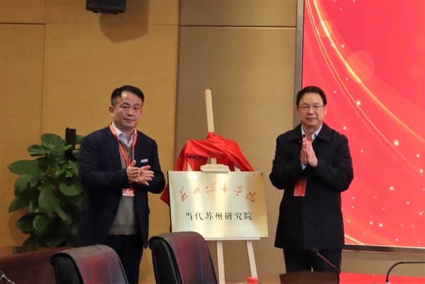 随后,王明国和芮国强共同为当代苏州研究院揭牌。