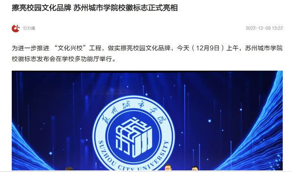下一步,苏州城市学院将进一步推动校园视觉形象识别系统的建设,根据应用场景统一设计相关内容,构建一批具有该校校徽标识形象的文化载体,更好地向社会传达学校的办学理念和文化精神,不断打造具有鲜明形象特征的苏州城市学院新名片。