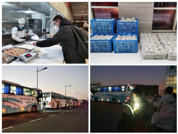 12月24日上午六点,学校食堂准时开门,为考研学子提供鸡蛋、包子、烧卖、豆浆等早餐,让学生在严寒的清晨收获一份温暖与鼓励。学校还安排了12辆大巴送学生前往各自考点,并随车发放面包、牛奶等点心,让学生去往各自考点后能够及时补充能量,安心应对考试,发挥出理想水平。