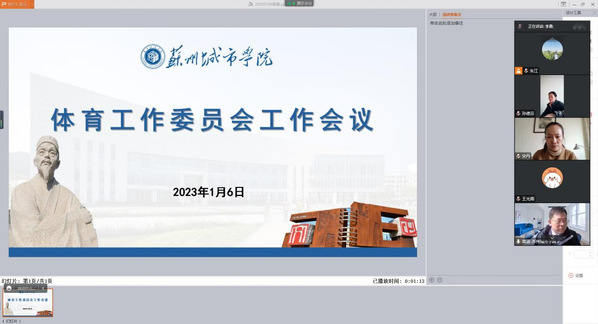 基础教学部李勇主任从贯彻落实《关于全面加强和改进新时代学校体育工作的意见》《关于印发深化体教融合促进青少年健康发展意见的通知》《教育部办公厅关于加快推进学校体育美育教学改革的通知》等文件精神、省高校体育工作专家组督察调研整改意见、2023年学校运动会的筹备和师生各项竞赛等方面详细介绍了2023年校体委工作计划和体育竞赛活动安排。并向会议介绍《关于苏州城市学院关于体育工作委员会调整的请示》《苏州城市学院体育工作委员会章程》《苏州城市学院关于加强学校体育工作的意见》等文件,与会委员就三个文件进行了充分的讨论和交流。