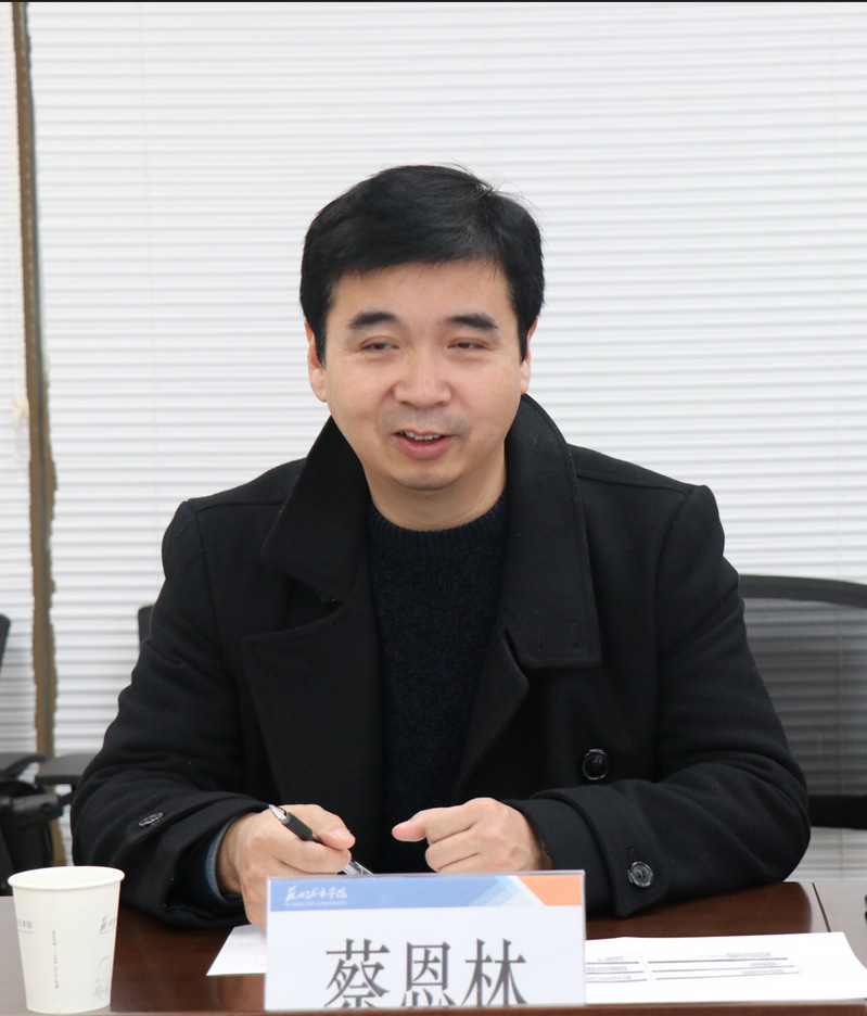 施盛威对蔡恩林教授一行的到来表示热烈欢迎,她简要介绍了学校产业学院的申报情况以及2023年产业学院的工作计划。她表示,学校将努力打造产教融合教学资源库、组建产教融合师资队伍、开展有层次的职业技能培训、完善联合实验室建设体系,并努力实现校企有效合作,在互惠共赢的前提下,探索构建产教深度融合的新型人才培养模式。青岛大学在产业学院建设运作方面有着丰富的经验,她期待在各位专家的指导和支持下,为苏州城市学院产业学院建设和发展注力。
