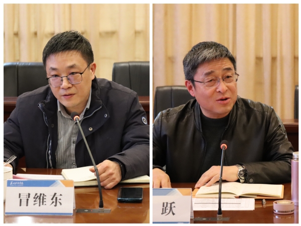 冒维东首先对各位领导的莅临指导表示热烈的欢迎。他指出,2022年是学院成立的第一年,学院以高水平应用型人才培养为目标,以省“十四五”重点学科建设为抓手,在人才培养、师资队伍、专业建设、产教融合、科研工作等方面取得许多可圈可点的成绩,呈现出快速向上向好的发展势头。这些成绩的取得离不开学校党政班子的坚强领导,离不开学科建设与科研工作处等职能部门的大力支持,更离不开全院教职工的辛勤付出。他希望,在新的一年,全院教师进一步增强紧迫感和使命感,严谨笃学、潜心治学,不断提升教学科研能力,以丰硕的教学科研成果助推学校高质量发展。