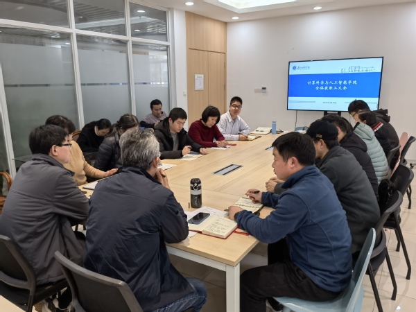 2月18日,计算科学与人工智能学院全体教职工大会在师生服务大楼209会议室召开,学院党委副书记胡荣,副院长凌兴宏及全院教职工参加,会议由凌兴宏主持。