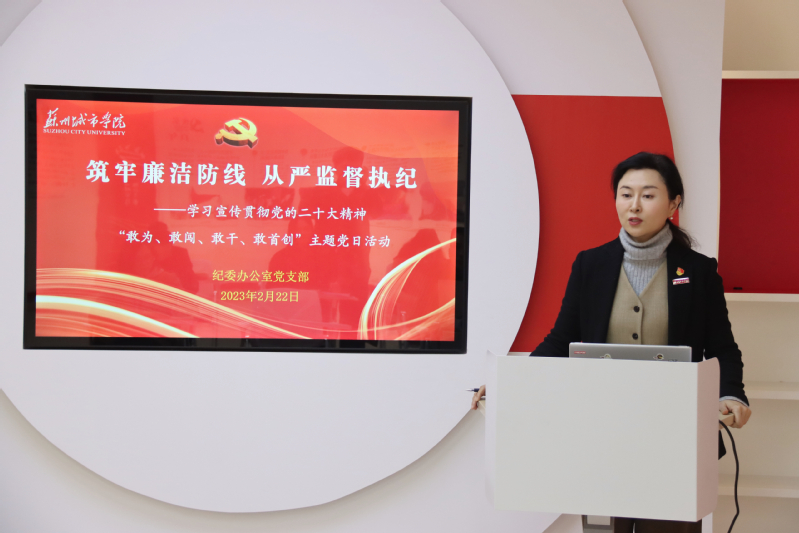 为深入学习贯彻党的二十大精神,坚决落实党中央和上级部署要求,干出好势头、干出新业绩,加快推进国内一流高水平应用型大学建设新步伐。2月22日下午,纪委办党支部全体党员在党建与廉政教育基地开展“筑牢廉洁防线 从严监督执纪”——学习宣传贯彻党的二十大精神“敢为、敢闯、敢干、敢首创”主题党日活动。校党委常委、纪委书记李萍同志以普通党员身份参加活动并讲话。