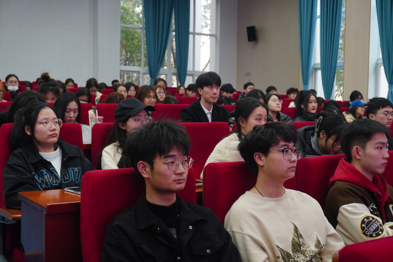 讲座中,丁良超以音乐作品《消愁》的歌词举例,向大家说明歌词所隐含的不同人生阶段。他表示,希望同学们深入思考“自己与党和国家的联系”即“小我与大我的联系”,强调应到大我中寻找小我定位,了解国家发展方向才能更好明晰个人的发展。