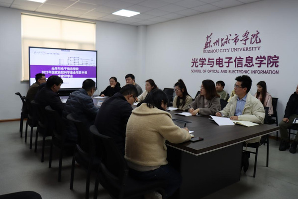 本次评审会邀请了苏州大学光电科学与工程学院教授、博导王钦华,苏州大学物理科学与技术学院特聘教授、博导杨恺,苏州大学能源学院特聘教授、博导孙靖宇担任评审专家,对我院拟申报2023年国家自然科学基金项目教师的申报书进行逐一指导。会议由学院行政科研工作负责人钱敏主持。