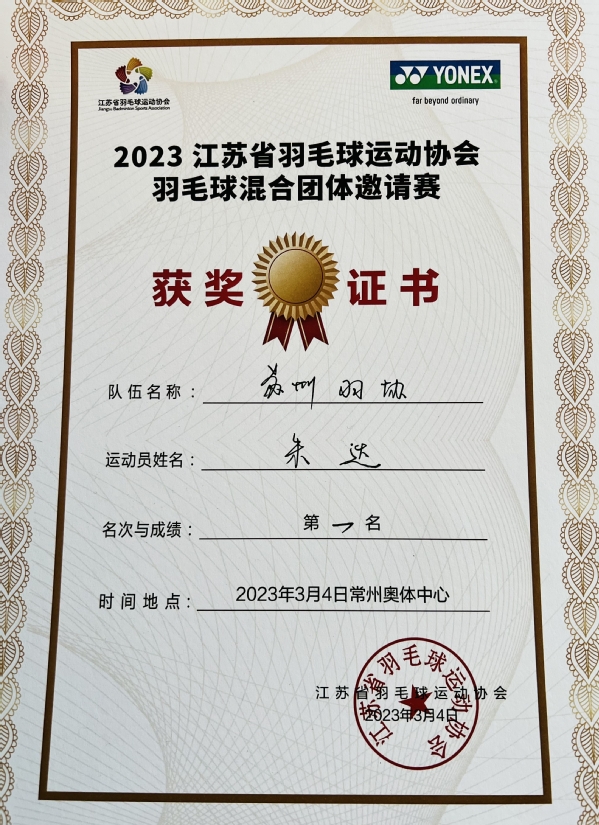 喜报!我校教师参加2023江苏省羽协混合团体邀请赛喜摘桂冠!