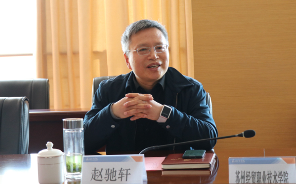 赵驰轩对我校的热情接待表示感谢,他赞扬了我校近年来取得的办学成绩,并介绍了苏州经贸职业技术学院的基本情况。他希望通过本次走访交流,进一步加强与我校的联系,促进双方在职普融通等方面的相互学习,共同提高学校专业建设水平和人才培养质量。