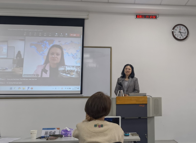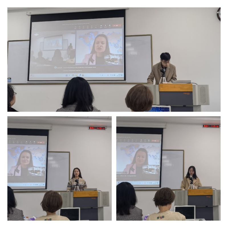 施盛威老师肯定了同学们在课程中取得的进步,并对辛勤付出的波方老师表达了感谢。她表示,苏州城市学院是一所年轻而有特色的大学,而居里夫人大学作为第一所与我校开展交流合作的波兰高校,以其良好声誉和教学质量赢得了我校师生的认可,助力了我校国际化目标的实现。最后,她向居里夫人大学师生发出邀请,希望双方能够早日在校园中相见,开拓更多国际合作与交流机会。