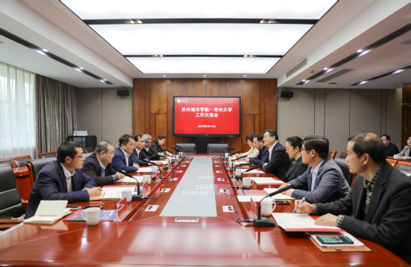 陈群代表学校对我校到访表示热烈欢迎,并对常州大学的建校历史、学校特色、教学情况、学科建设、科研情况及学校实现从行业性到地方性转变发展路径进行了全面介绍,并重点介绍了学校石油石化学科、创新创业教育、红色文化育人三大特色。他表示,学校在高质量发展的道路上将进一步结合地方政府及行业企业需求培养应用型人才。他期待与苏州城市学院一道,互学互鉴,共同努力,推动地方性应用型高校的进一步发展。