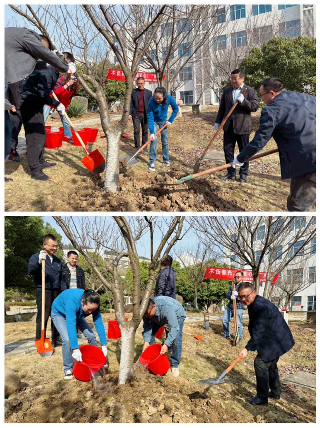 基建与后勤管理处和招生就业处党支部联合开展“不负春光,植初心,‘树’未来”主题党日活动