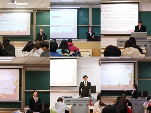 3月14日、16日晚,学生宣讲团成员陈晓君等11位同学利用晚自习时间走进2022级11个班级,进行党的二十大精神宣讲。在宣讲中,陈晓君围绕党的二十大报告重点介绍了“两个关键时刻”:一是全党全国各族人民迈上全面建设社会主义现代化国家新征程,二是向第二个 百年奋斗目标进军,勉励大家明确使命担当,坚定为中华民族伟大复兴添砖加瓦的决心与信念。沈小意则用“三个事关”总结党的二十大召开的重要意义:这是一次高举旗帜、凝聚力量、团结奋进的大会,事关党和国家事业继往开来,事关中国特色社会主义前途命运,事关中华民族伟大复兴。她鼓励大家自觉加强思想淬炼、主动投身实践锻炼,努力成长为能担当民族复兴大任的时代新人。王睿颖强调深入理解党的二十大的主题、学习党的二十大报告的精神要和习近平总书记系列重要讲话结合起来。汪赛曌对“三个务必”“三件大事”“里程碑意义”等关键词作了有关阐释和说明。陶韶君则阐述了青年在党的历史征程中所做出的贡献,介绍了习近平总书记对新时代青年的殷切期望。