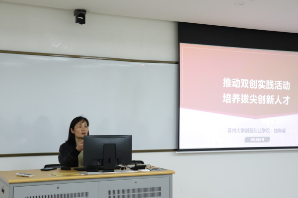 钱春芸教授以“推动双创实践活动,培养拔尖创新人才”为主题,聚焦“大学生创新创业训练计划项目”,从“双创实践活动相关情况”“双创实践互联互通举措”“问题与思考”三个方面系统、全面地讲解了苏州大学双创工作方面开展的先进经验和工作成效,并就未来如何更好地推进学校双创工作做了展望与分享。