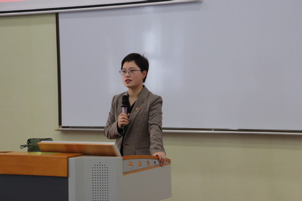 于潜驰书记以“激扬青春迎挑战,开拓创新向未来”为题,重点讲解“挑战杯”大学生课外学术科技作品竞赛相关内容,她从“竞赛简介”“作品申报”“参赛资格”“备赛过程”“评审规则”全方位解读学生参加该项赛事的流程以及选择合适方向与赛道的重要性。