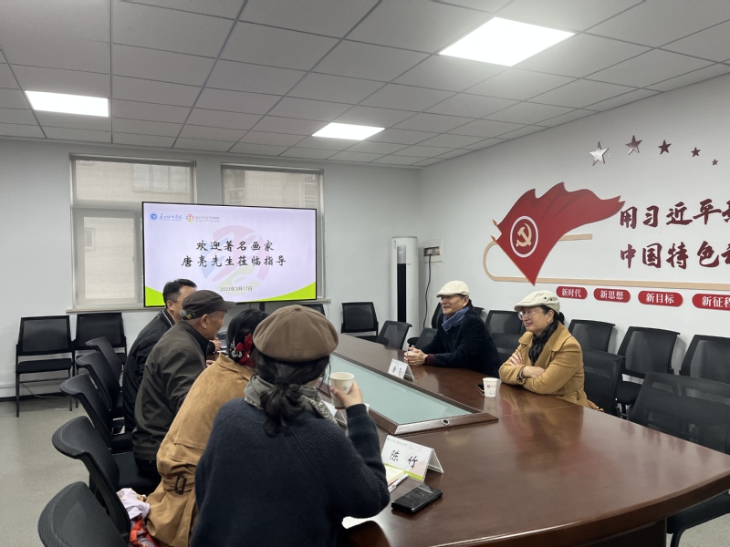 唐亮对学院的热情接待表示感谢。他向与会的各位老师介绍了自己的艺术创作生涯,并对我院人才培养、办学发展提出了宝贵的意见和建议。