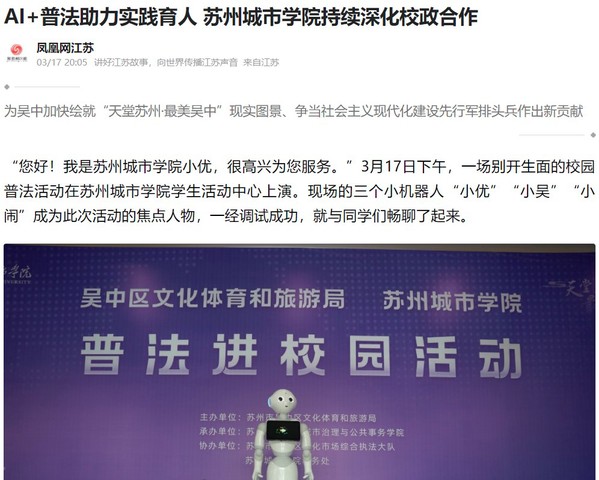 (凤凰网江苏)AI+普法助力实践育人 苏州城市学院持续深化校政合作