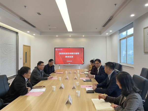 为进一步深化产教融合和银校战略合作关系,3月23日下午,我校与苏州银行开展交流座谈会议。双方就推动校企金融服务、产教融合、人才培养等方面的合作进行了深入交流。苏州银行总行行长赵琨,公司银行总部总裁助理刘震,公司银行总部大客户部总经理陆萍,苏州分行副行长朱亚川出席会议。我校党委副书记、校长赵志宏,党委常委、副校长周高,国有资产与财务管理处副处长(主持工作)葛军参加,会议由葛军主持。