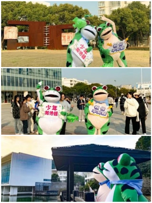 活动第二环节,由寓意“平安”“加油”的蛙蛙信使为同学们送上承载寄语的明信片,将师生间的关怀和温情播撒在校园各个角落。同学们纷纷与励志玩偶合影留念,洋溢着健康向上的青春气息,散发出对校园生活的憧憬和热爱。此次明信片赠与活动也受到了校园安保、宿管阿姨的欢迎,大家纷纷参与到活动现场中,与同学们友好互动,充分彰显了学校全员、全过程、全方位育人的工作理念。