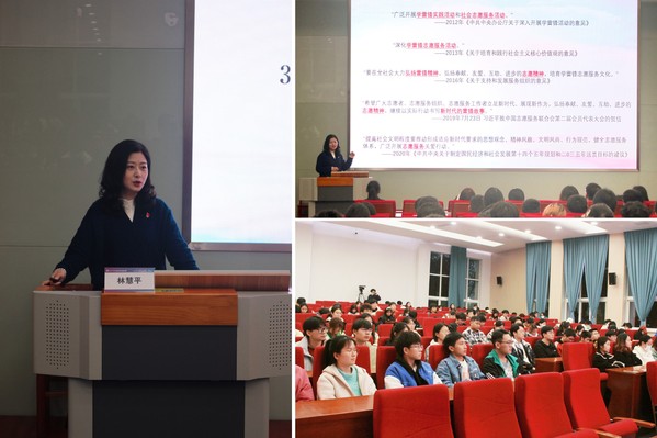 开展“向雷锋学习 志愿正青春”信仰公开课。邀请苏州大学马克思主义学院思政名师工作室办公室主任林慧平担任信仰公开课主讲嘉宾。公开课上,林慧平基于理论与实践两个维度,详细阐释了雷锋精神和志愿精神内涵关联、并结合自身志愿经历向同学们发出加入志愿者队伍的号召,勉励同学们在日常的学习、工作、生活中培育奉献精神、友爱互助精神,增强社会责任感。参与信仰公开课的同学纷纷表示,将持续深入弘扬、赓续雷锋精神,自觉树立崇高理想追求,践行社会主义核心价值观,为中国式现代化建设添砖加瓦。