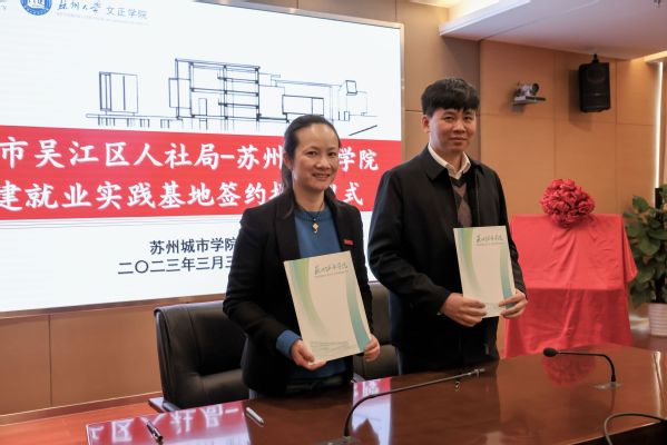 顾旭东对学校的人才培养模式表示高度肯定,分析了当前高校毕业生面临的就业形势,介绍了吴江区的产业结构和区位特色。他表示,双方就业实践基地的共建,有利于进一步扩大就业朋友圈,开展多层次、多形式、多领域的校企合作,实现资源整合和配置优化,做优做强“全链条”人才服务。同时也邀请苏州城市学院学生参加“感知吴江”活动,深入了解吴江的产业结构、经济发展、人才政策。