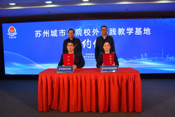 进一步加强学校实践育人平台建设,深化校政合作,聚焦应用型商科人才培养,拓展学生实践锻炼机会,不断提升学生专业基础技能和知识应用能力。4月7日下午,苏州城市学院校外实践教学基地签约仪式在吴中经开区税务局举行。苏州市税务局党委委员、总经济师张志忠,吴中经开区税务局党委书记、局长夏洁,吴中经开区税务局党委委员、副局长杨照生,苏州城市学院党委常委、副校长兼数字经济与管理学院院长周高,教务处副处长顾荣庆,数字经济与管理学院党委副书记尹维军等出席签约仪式。